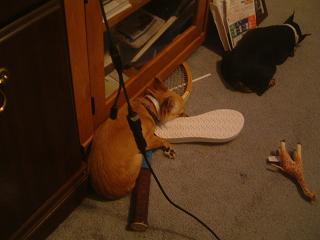Lilly and Snoopy taking a nap.Doesn't look very comfortable,but oh well!